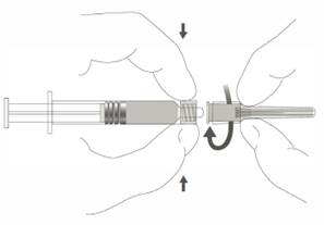 Étape 1 : Pour fixer l’aiguille à la seringue, retirer le capuchon pour exposer l’embase de l'aiguille et visser doucement l’aiguille à l’adaptateur Luer lock jusqu’à sentir une légère résistance. |