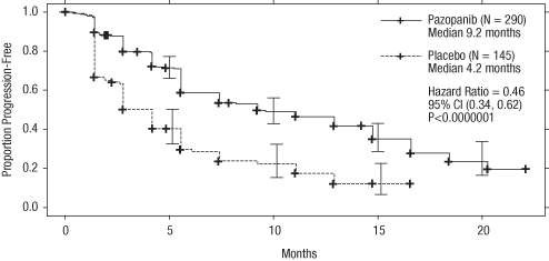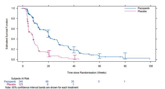 La sécurité et l’efficacité du pazopanib chez les enfants âgés de 2 à 18 ans n’ont pas encore été établies.